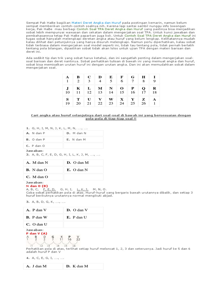 Petunjuk c berisi tentang aturan agar kita memilih jawaban dari beberapa poin (1234). adanya ketiga petunjuk ini membuat kita harus cermat dalam melihat petunjuk yang tepat untuk menyelesaikan soal-soal sbmptn 2019. berikut adalah materi yang akan diujikan soal tes jawaban dan potensi numerik akademik kunci pada saat tes sbmptn 2019 : tes kemampuan dan potensi akademik (tkpa). Contoh soal test potensi akademik tpa terbaru lengkap disertai dengan jawaban dan pembahasannya, numerik, logika, verbal, visual, tips dan trik tes potensi akademik (tpa): hasil penelusuran untuk contoh tes potensi akademik dan kunci jawaban. Tes kemampuan numerik: contoh soal tpa aritmatika dasar, tes potensi akademik, tes matematika, artimatika, tes angka, contoh soal tpa terbaru 2017, 2018.